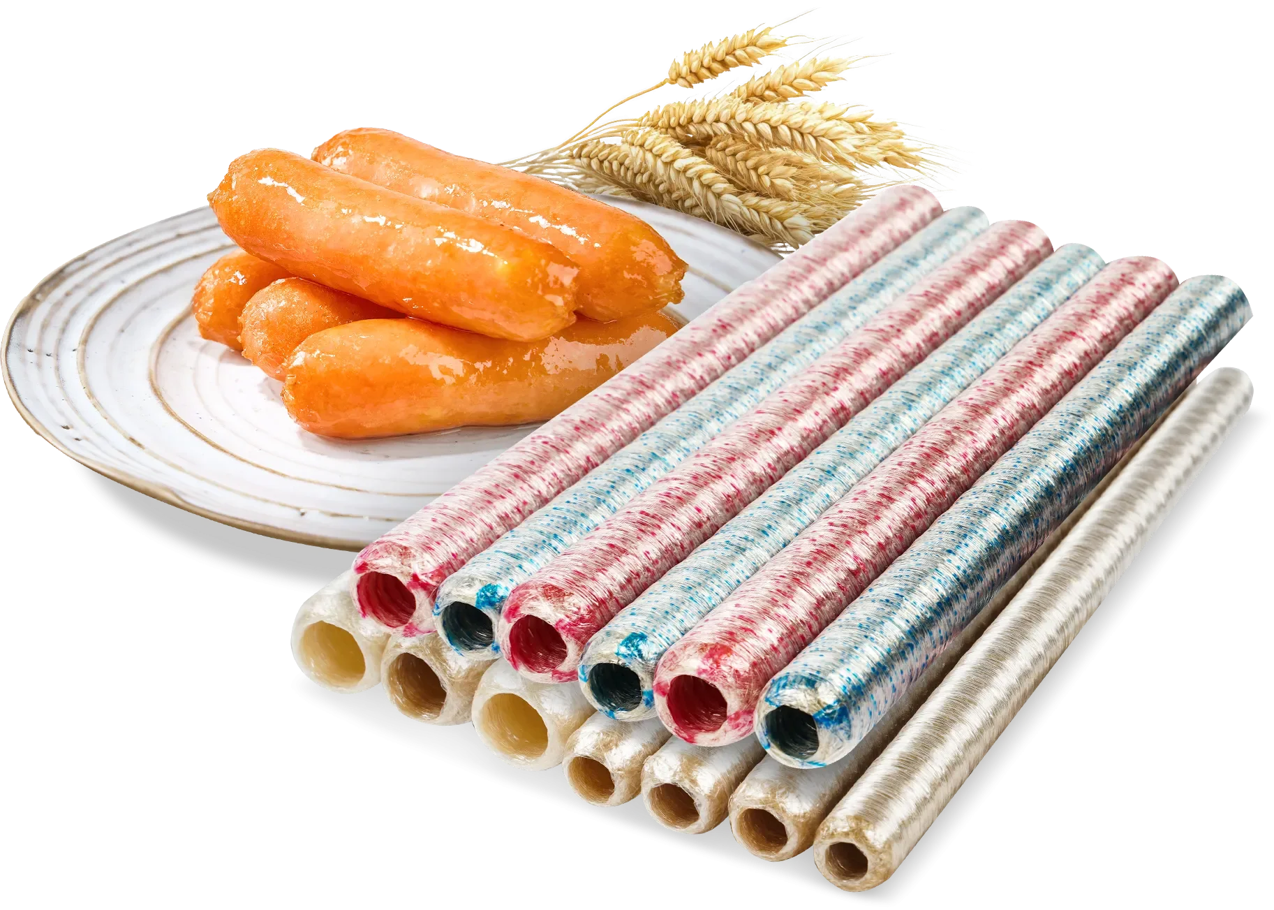ไส้เซลลูโลส Cellulose Casing คือ ไส้ที่ผลิตจากเซลลูโลส ซึ่งเป็นเส้นใยพืชธรรมชาติ เหมาะสำหรับผลิตภัณฑ์หลากหลายประเภท เช่น ไส้กรอกปรุงสุกหรือแปรรูปต่างๆ เมื่อไส้กรอกผ่านการปรุงสุกเสร็จแล้ว ผู้บริโภคสามารถลอกเปลือกออกได้ง่าย สะดวกในการบริโภค และเก็บรักษา ปลอกไส้เซลลูโลสมีคุณสมบัติในการรักษารูปทรงและช่วยให้ไส้กรอกมีความเงางาม มีความแข็งแรง ทนทาน ผลิตภัณฑ์ทุกชิ้น ได้รับคุณภาพมาตรฐานตามประกาศกระทรวงสาธารณสุข (ฉบับที่ 435) พ.ศ.2565 เรื่อง กำหนดคุณภาพหรือมาตรฐานของภาชนะบรรจุ ที่ทำจากพลาสติก และได้รับการรับรองมาตรฐาน BRC, FSSC, ISO, HACCP และ HALAL เพื่อคุณภาพและความปลอดภัยสูงสุด